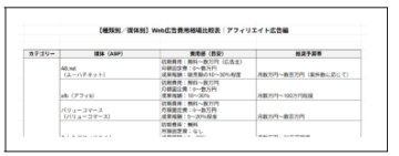 | 成果報酬型 | ・成果(問い合わせや購入件数など)に応じて費用が決まる方式 ・成功報酬の比率は契約内容によって大きく変動 |
