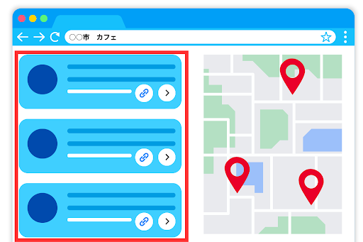 ローカルSEOとは、地域名や位置情報などのキーワードを含む検索に対して最適化するための施策です。具体的には、ユーザーが「渋谷 カフェ」などと検索した際に、自店舗やサービスを上位に表示させることを目的とします。