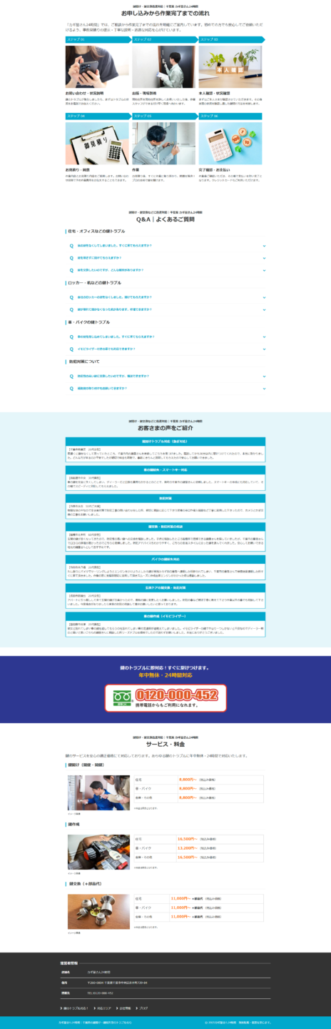 紙のタウンページの時代から長年ご利用いただいているカギ屋さん24時間さまは、現在、ホームページ運用に加えてWeb広告運用(まかせて繫盛Web広告)もご利用いただいております。